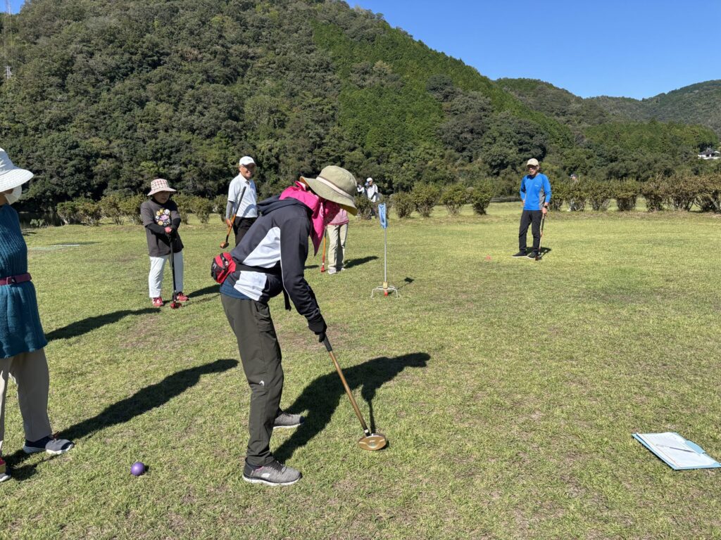 参加者100人が8ホールの3ラウンドをプレーしました。会場のコースは土と芝生。それぞれのコースでボールを打つ力加減が違い苦戦していましたが、皆さん笑顔で楽しくプレーしていました。