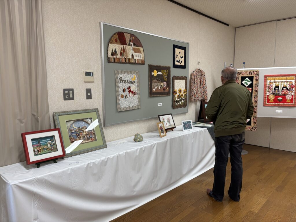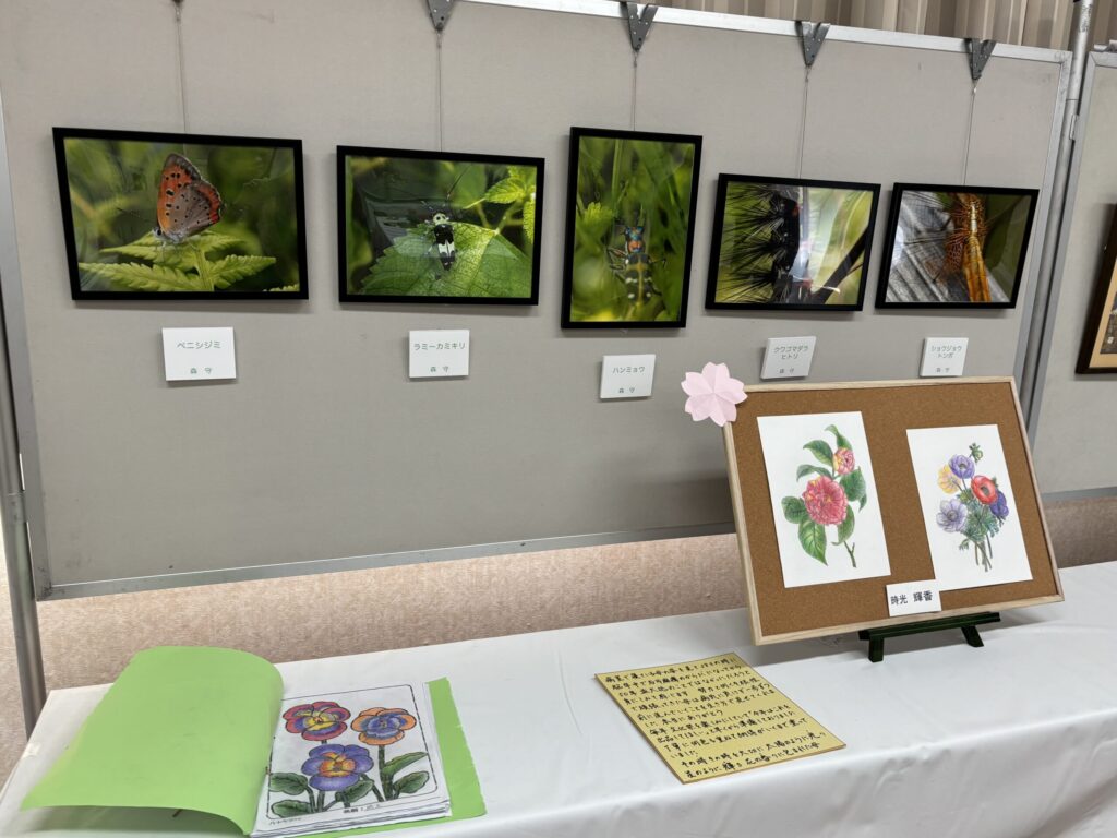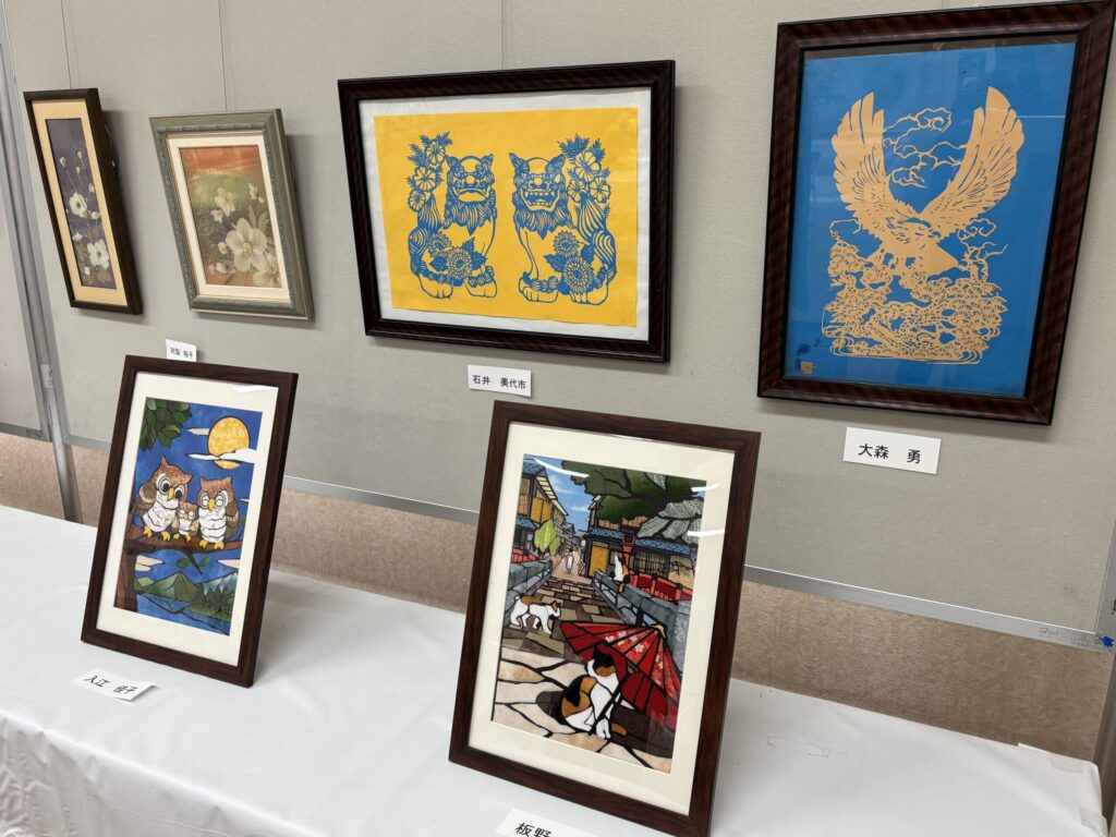 文化祭では老人クラブ会員の作品がたくさん展示されていました。作品の数は子どもさんの作品も含めて200点以上。作品は展示会場だけではなく、廊下などへも展示されていました。