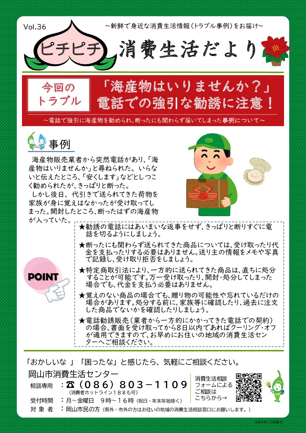 ピチピチ消費生活だよりVol.36 ~新鮮で身近な消費生活情報(トラブル事例)をお届け~