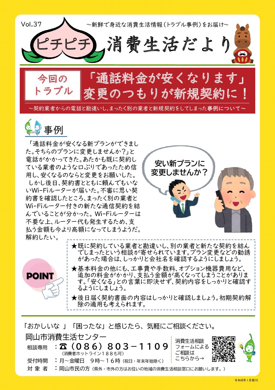 ピチピチ消費生活だよりVol.37 ~新鮮で身近な消費生活情報(トラブル事例)をお届け~
